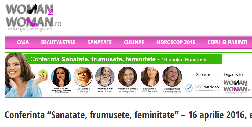 Sunt speaker la conferinta Sanatate, frumusete, feminitate, realizata de www.woman2woman.ro si sposorizata de http://www.seomark.ro