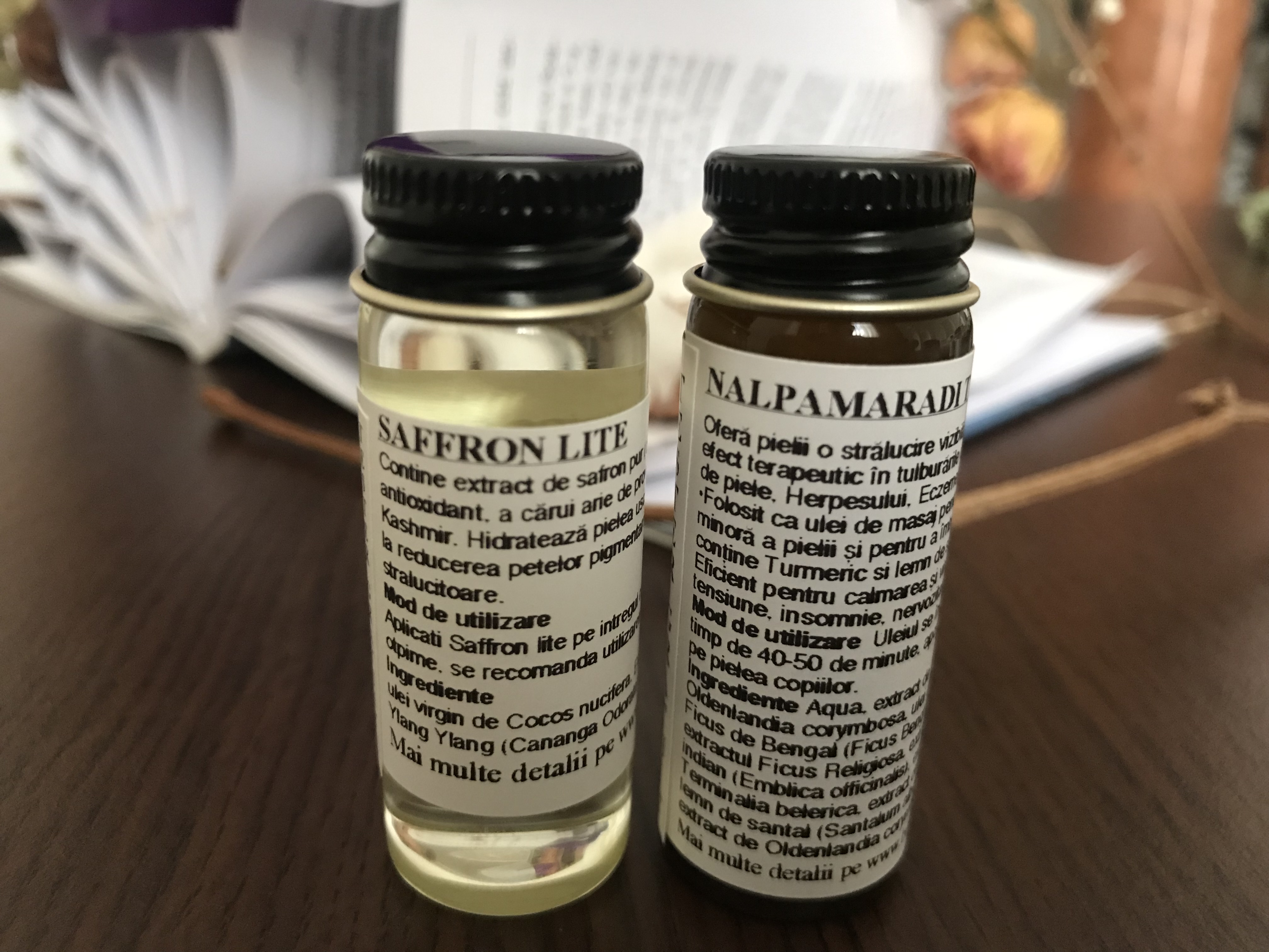 Ulei de masaj ayurvedic Saffron Lite cu extract de sofran pentru piele uscata, pete pigmentare, imbunatateste textura si da pielii stralucire.