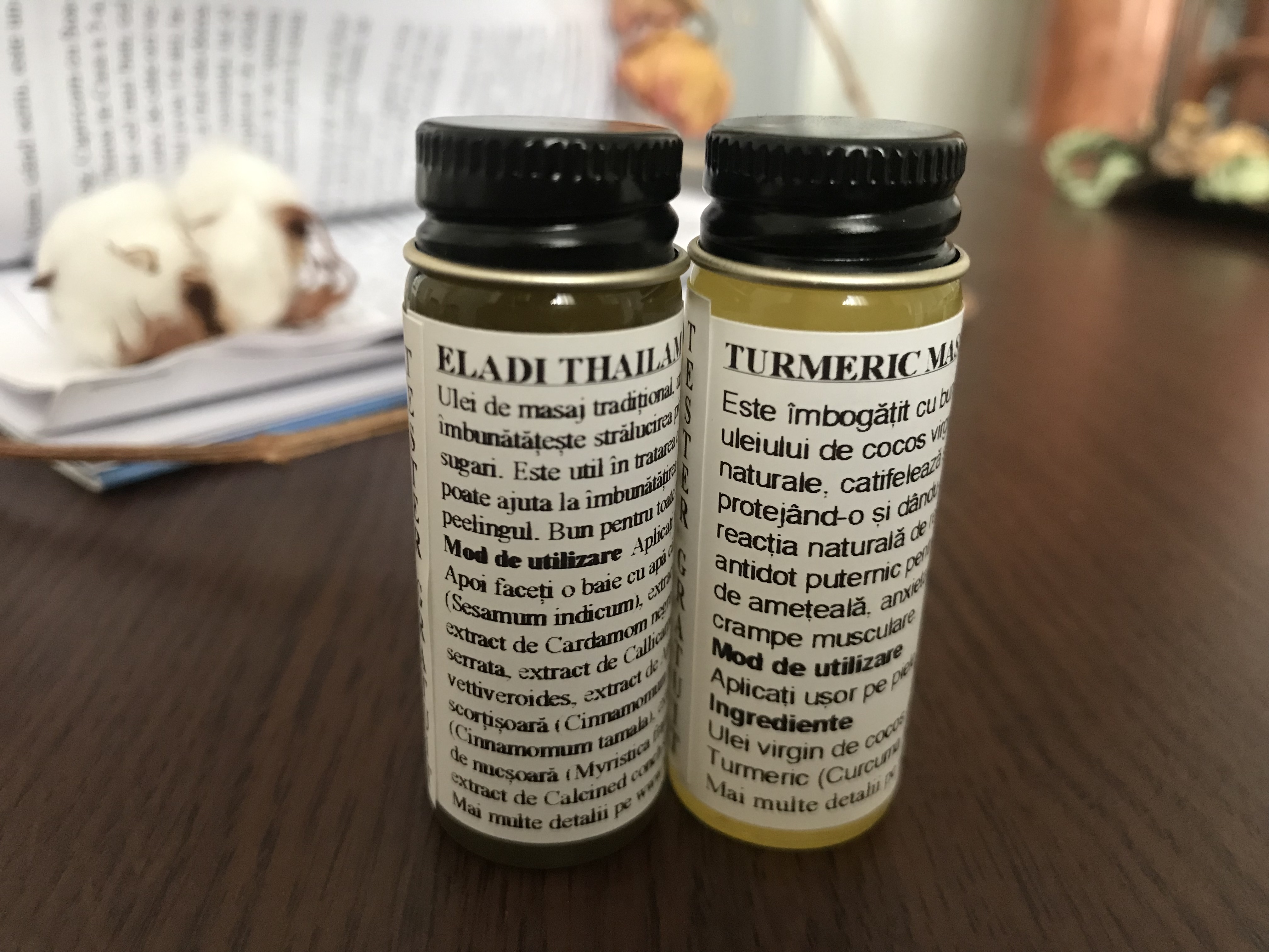 Ulei de masaj ayurvedic Turmeric Massage Oil– pe baza de ulei de cocos si turmeric, relaxeaza si calmeaza pilea, , antidot pentru stres, ameteala, anxietate, tensiune, insomnie, nervozitate si crampe musculare.